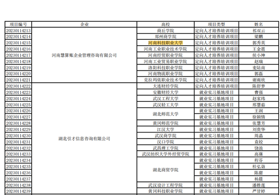 近日,教育部高校学生司发布了《关于第二期供需对接就业育人项目立项名通知》(教学司函(2023]6号),经高校申请、用人单位申报、专家审核、立项单位信息核查等环节,我校tyc522cc太阳成集团与河南慧算账企业管理咨询有限公司联合申报的“定向人才培养培训项目”,获批确定为教育部高校学生司第二期供需对接就业育人项目。